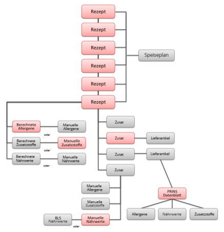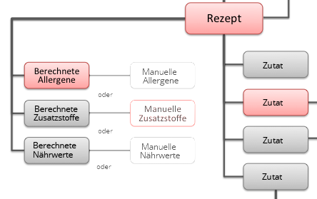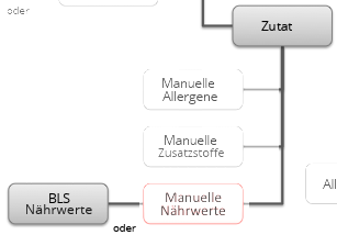 Im Mittelpunkt steht die Zutat, die Informationen zu Allergenen, Zusatzstoffen und Nährwerten mitbringen kann. Die Quelle dieser Daten kann unterschiedlich sein.