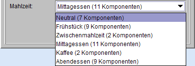Die Mahlzeitauswahl hinsichtlich der Komponentenzusammensetzung lässt sich über gleichnamige Auswahlliste ändern.
