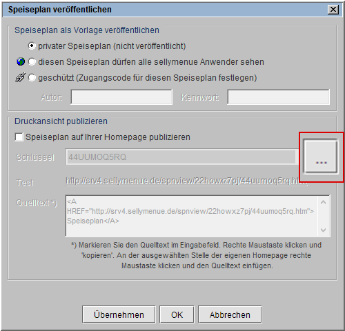 Sie können auch einen oder mehrere Publikationsschlüssel anlegen, ohne sofort einen Zuordnung zu einem konkreten Speiseplan vorzunehmen. Das bedeutet, Sie legen sich zuerst einen Pool von verschiedenen Schlüsseln an.