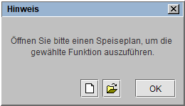 Haben Sie keinen Speiseplan geöffnet, erhalten Sie diesen Hinweis (s. Bild rechts).