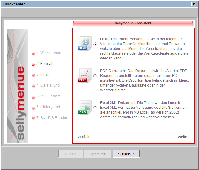 Je nach Formatauswahl durchlaufen Sie die Schritte 1-7 unterschiedlich: