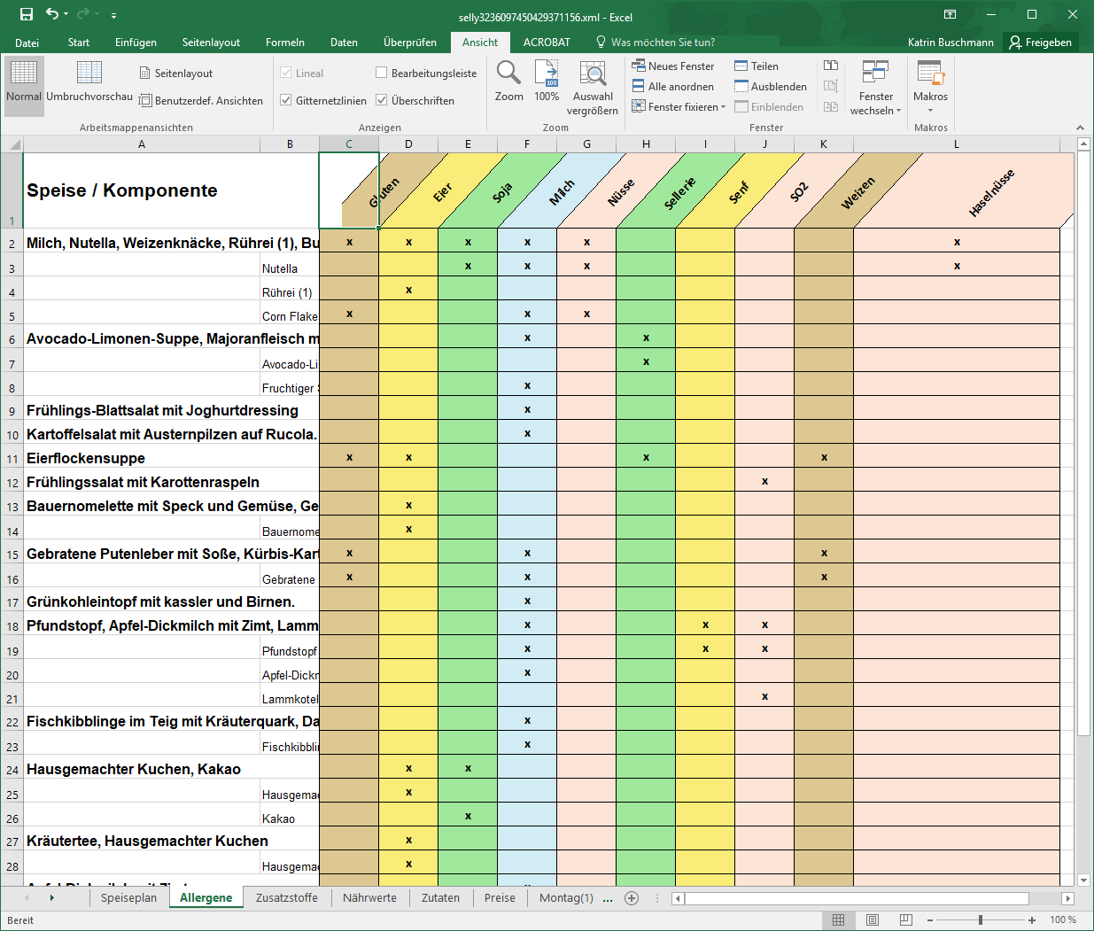 Die Allergene werden für jede Komponente pro Zutat angezeigt.
