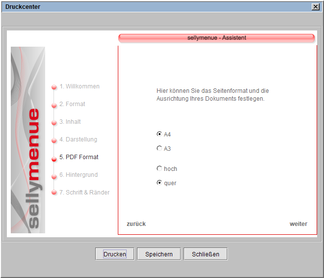 Sie müssen zuerst den zu druckenden Speiseplan geöffnet haben, bevor Sie das Druckcenter (Druckassistent) öffnen.