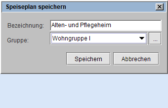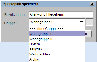 Beim Speichern eines Speiseplanes kann die Gruppe festgelegt werden, in der der Speiseplan abgelegt werden soll (s. Bild rechts).
