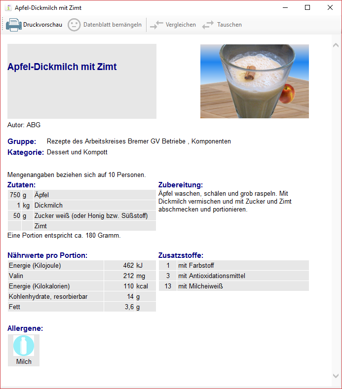 - Symbol. pro Komponente und erhalten die detaillierte Rezeptansicht. Mittels Link