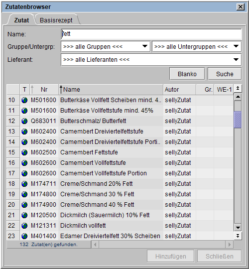 Zutatenbrowser, führen ggfs. eine Suche durch und