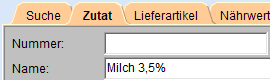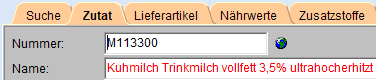 Wurde bereits für die Zutat ein Lieferartikel zugeordnet, können Sie sich hier über mitgebrachte Zusatzstoffe informieren.