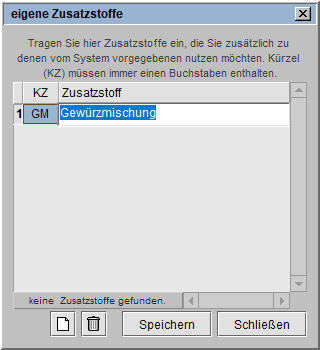 Zum Hinzufügen von eigenen Zusatzstoffen klicken Sie, im Dialog eigene
