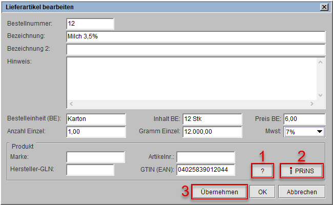 4) der Bearbeitungsdialog Lieferartikel bearbeiten. Sie können