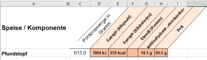 1. Wert aus Zutaten-Spalte manuell, wobei dieser aus einem PRiNS-Datenblatt stammen oder tatsächlich manuell (bekannter Wert, ggf. gerundeter PRiNS- oder BLS-Wert o. ä.) eingegeben worden sein kann;
