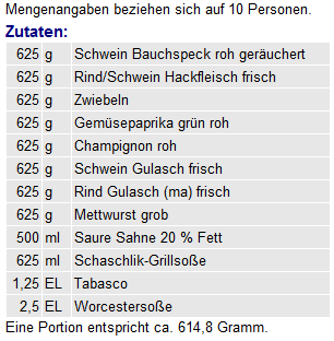 Automatisch aus den für die jeweiligen Zutaten hinterlegten Nährwertangaben berechnete Nährwertmenge pro Portion. Die Addition der Einzelwerte erfolgt nach folgenden Prioritäten: