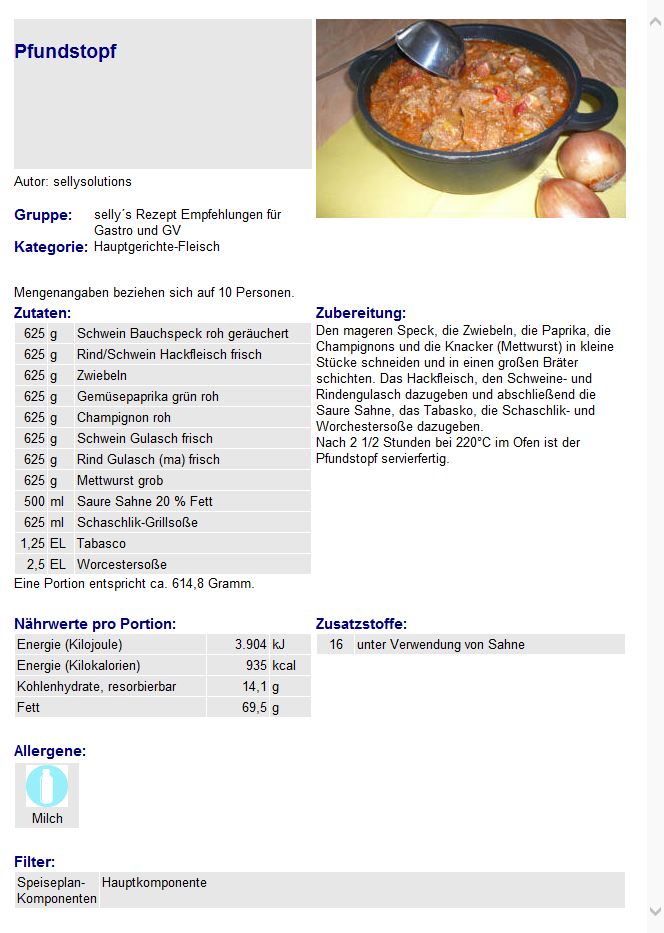 Die Referenzmenge wird aus dem Rezept in die Speise übernommen und kann auch dort geändert werden, da die Menge der Speisezutaten oder die Speisezutaten selbst geändert werden können.