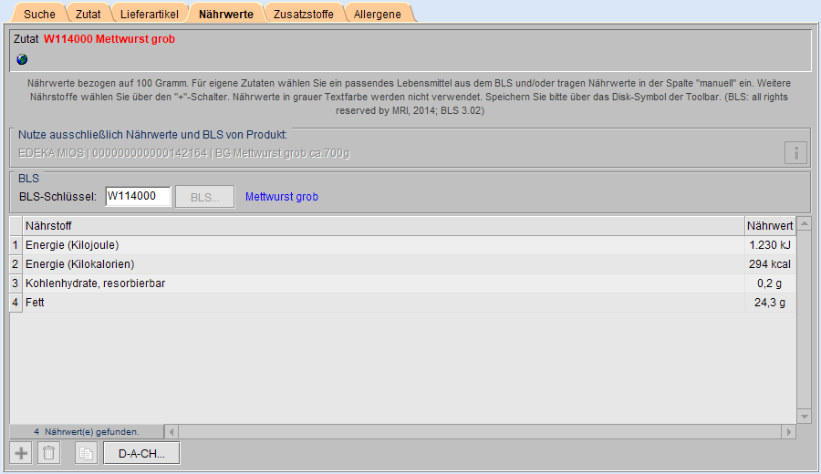 ), basieren die Nährwerte auf einem BLS-Schlüssel.