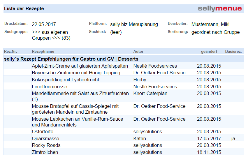 (s. Markierung 2) kann eine Liste der Rezeptnamen für die ausgewählten Sucheinstellungen