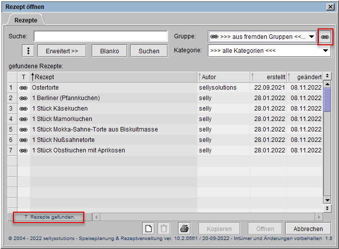 In unserem Beispiel enthält diese Gruppe 7 geschützte Rezepte