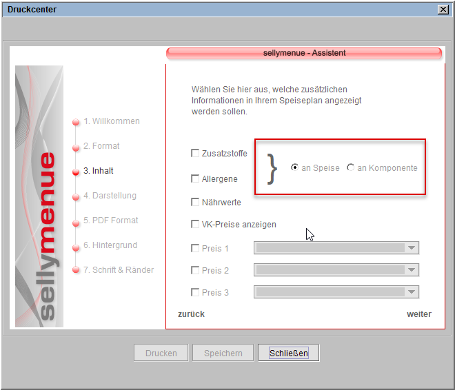 Beim Ausdruck Ihres Speiseplans wählen Sie im Druckcenter, im Schritt 3, die Darstellungsoption: