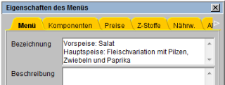 Sie haben für Ihre Speise ein Menü zusammengestellt.
