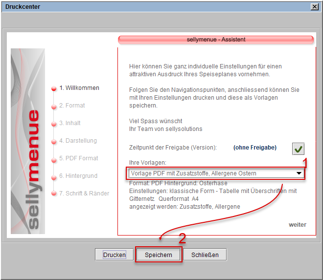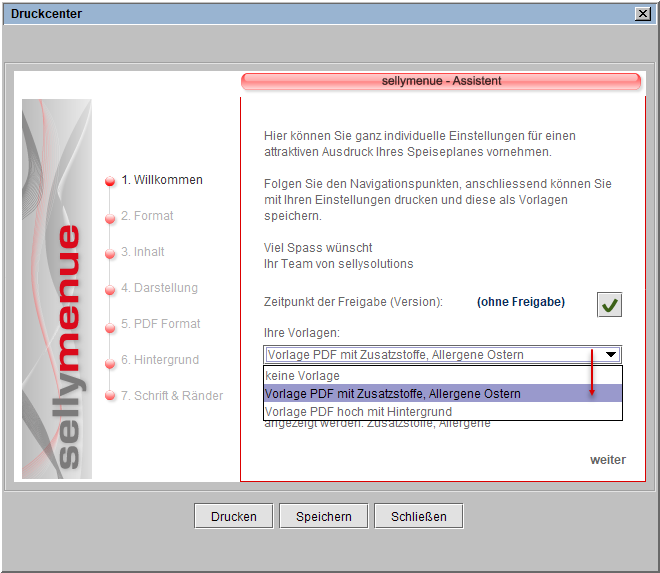 Speiseplandruck gewählt, befinden Sie sich im Schritt 4 (s. Bild