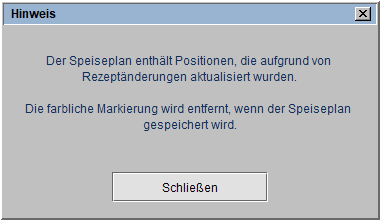 Ursache ist eine Änderung in den Zutaten des Rezeptes, die im Speiseplan durchgeführt wurden.